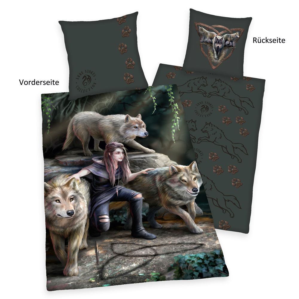 Herding Renforcé Wende Bettwäsche 2 tlg. 135x200cm Anne Stokes Wolfswächterin