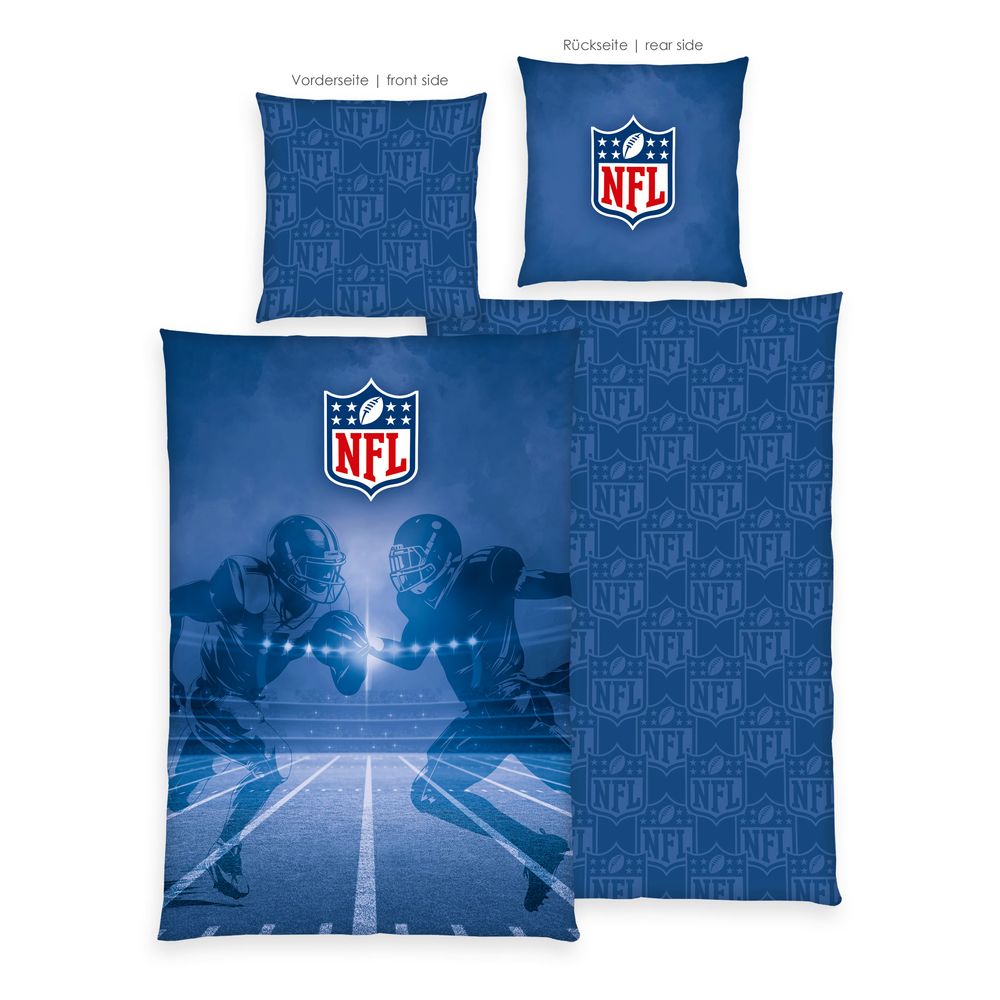 2 -teilige Renforcé - Bettwäschegarnitur "NFL American Football " in 135x200cm in Blau