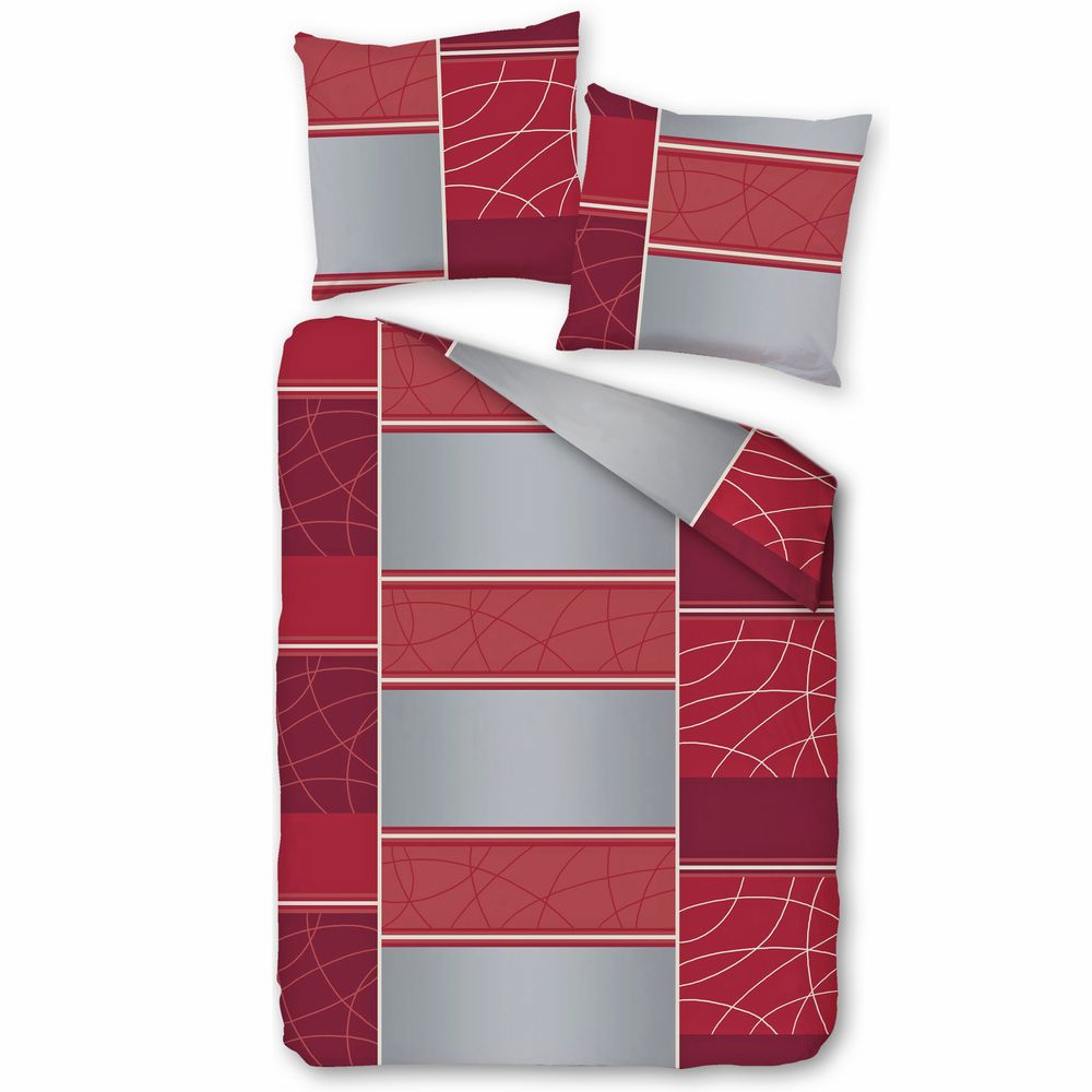 JACK Biber Baumwoll Bettwäsche 2 tlg. 135x200cm Linienzauber Rot Blau Grau
