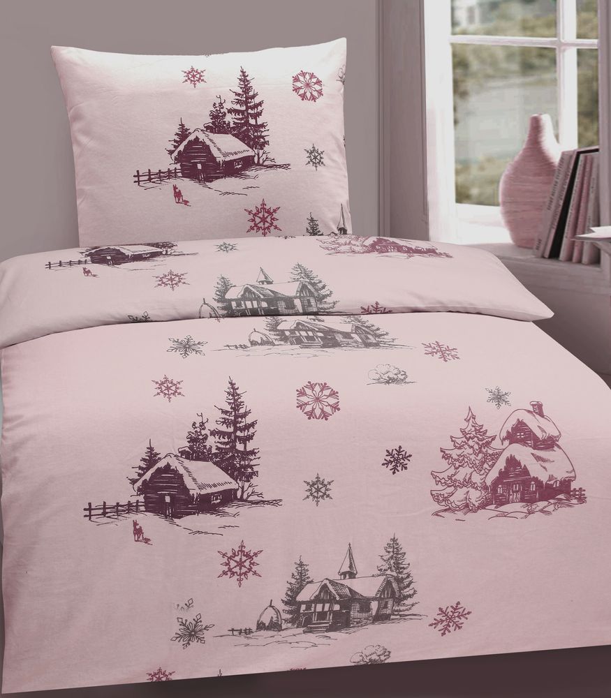 JACK Biber Bettwäsche 2 tlg. 135x200cm Winter Dream Rosa