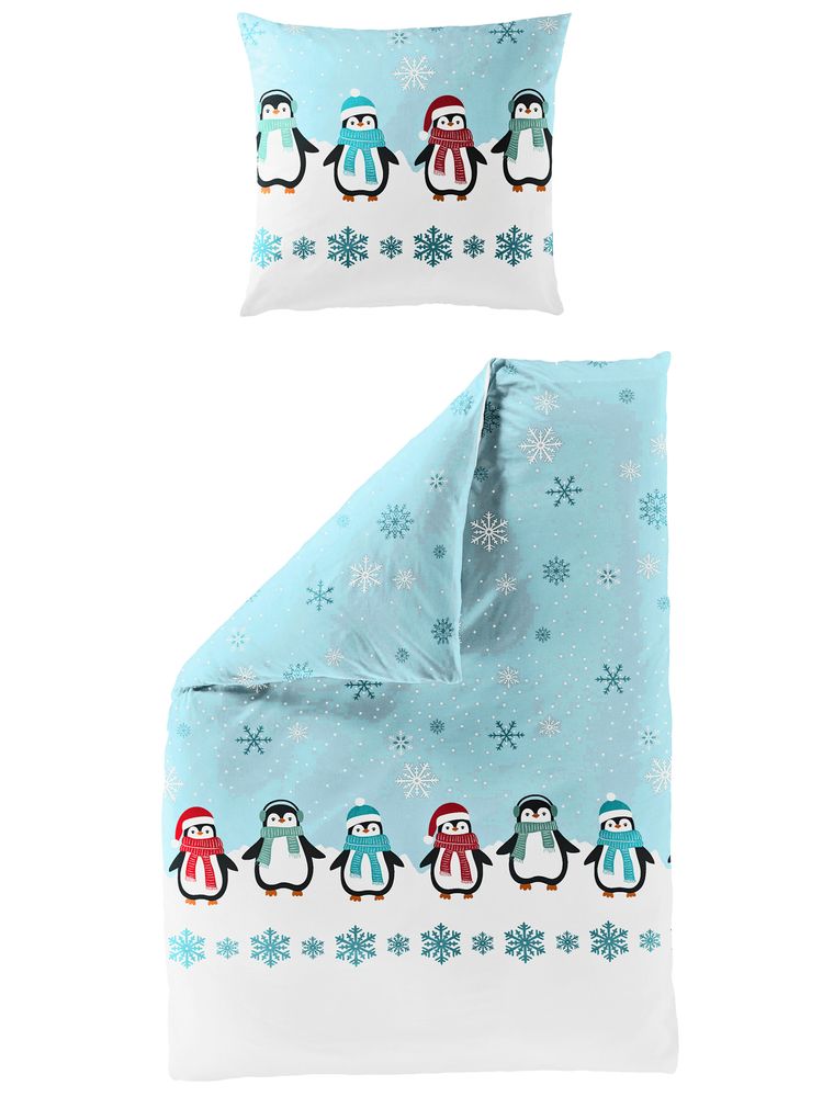 JACK by Bierbaum Biber Bettwäsche 2 tlg. 135x200cm Pinguin Familie Schnee