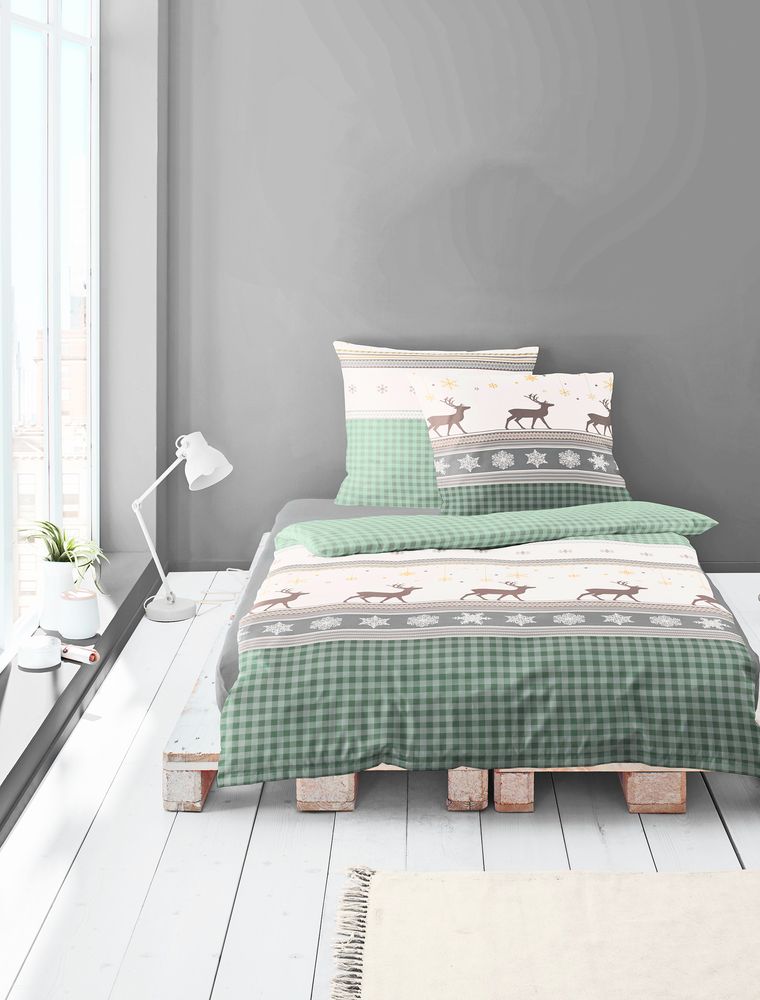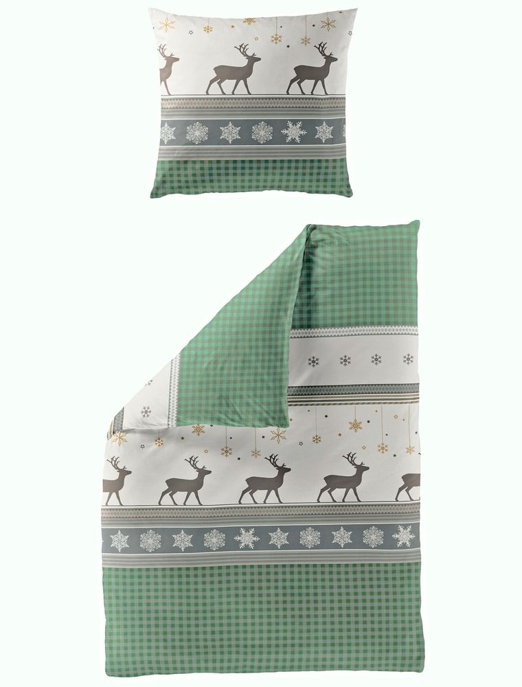 JACK by Bierbaum Biber Bettwäsche 2 tlg. 135x200cm Rentier Hirsch Karo Grün