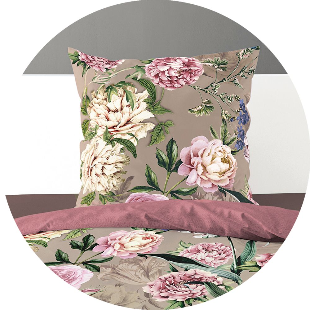 JACK by Bierbaum Mako Satin Bettwäsche 135x200cm 2 tlg Blumenparadies Taupe Rosa