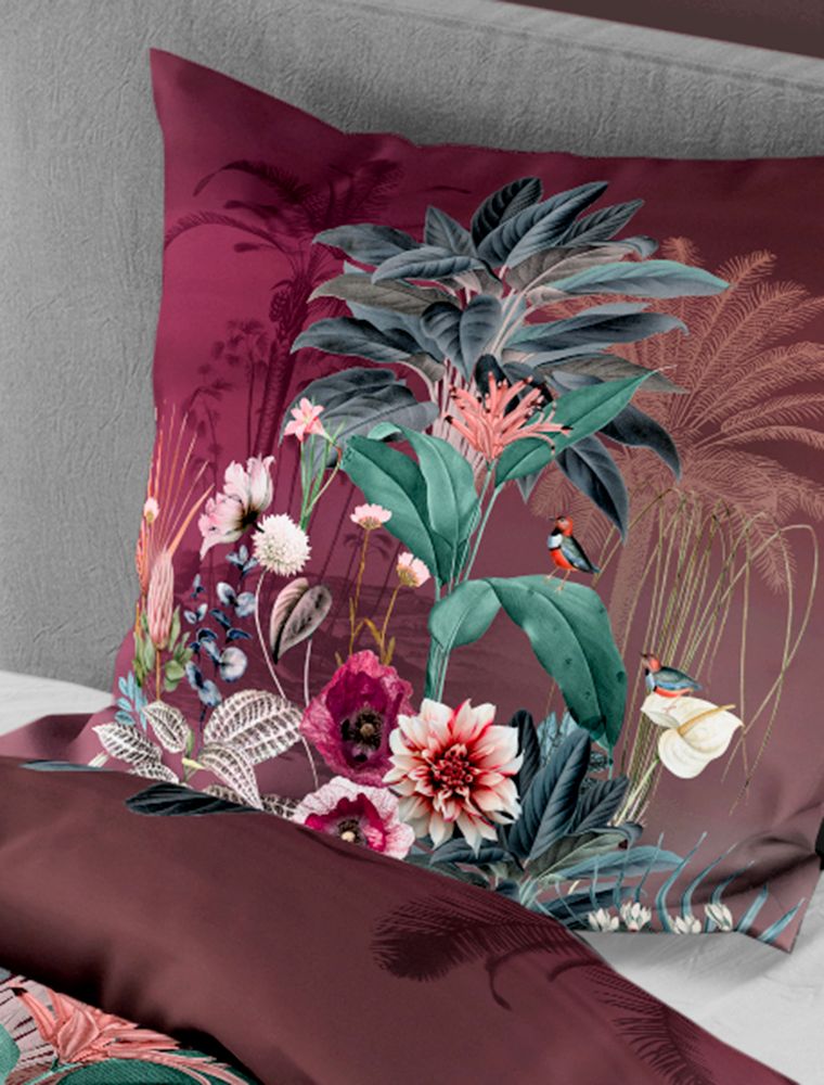 - ✔DESIGN: Frisches Motiv mit tropischen Pflanzen und Vögeln in Burgund/Rot