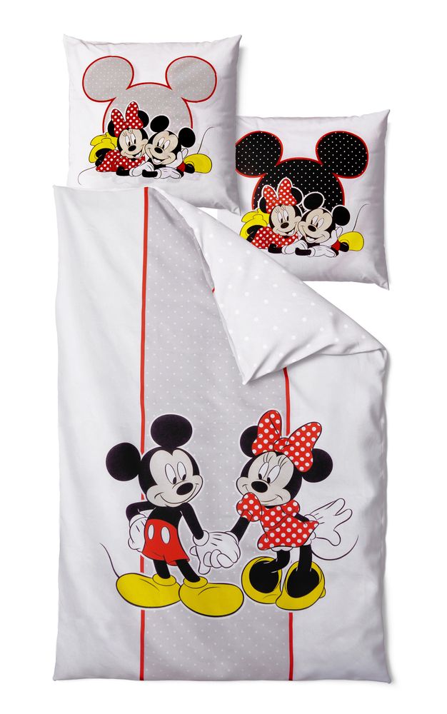 2 -teilige JACK - Renforcé - Wende - Bettwäschegarnitur "Mickey & Minnie Mouse Punkte" in Grau