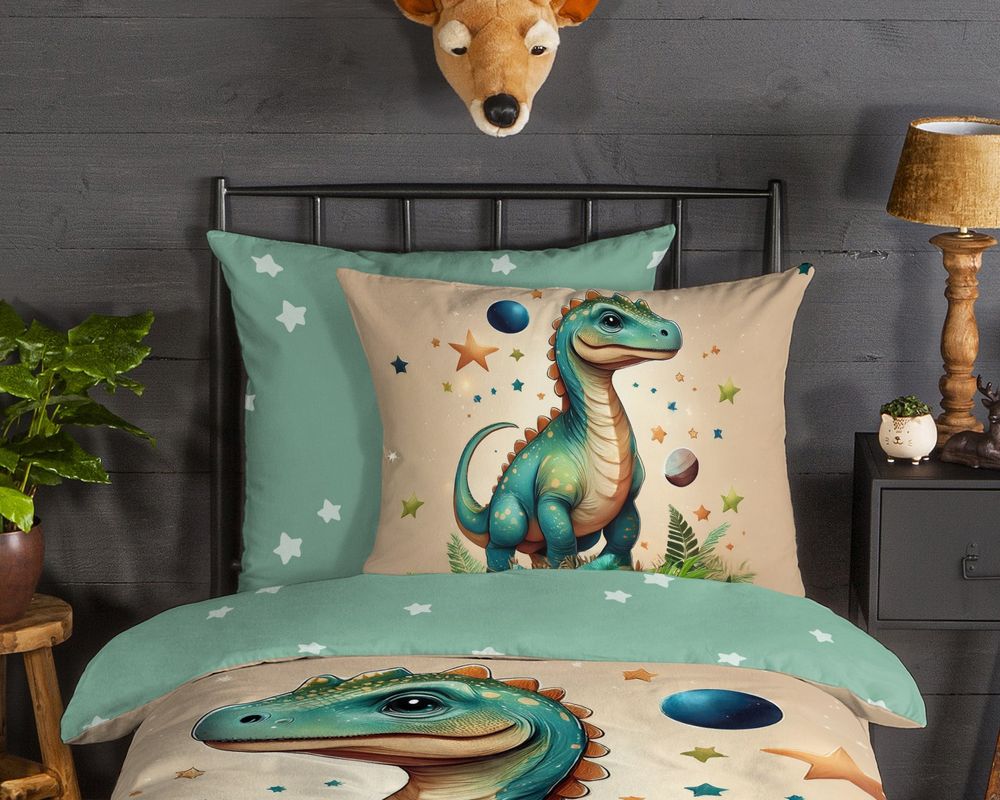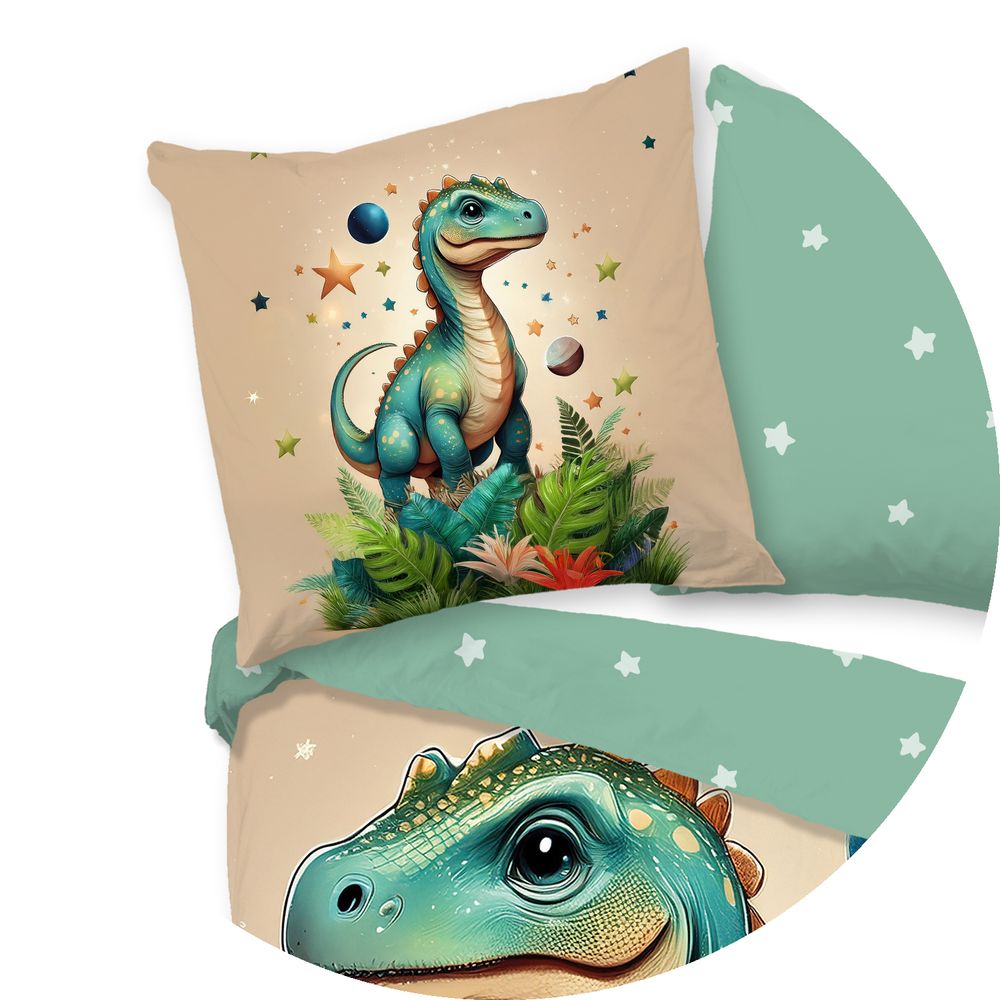 2 -teilige Flanell- Winterbettwäsche "Dinosaurier Sterne Grün" in 135 x 200 cm