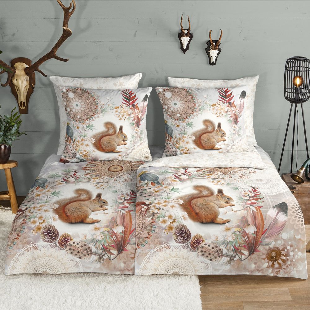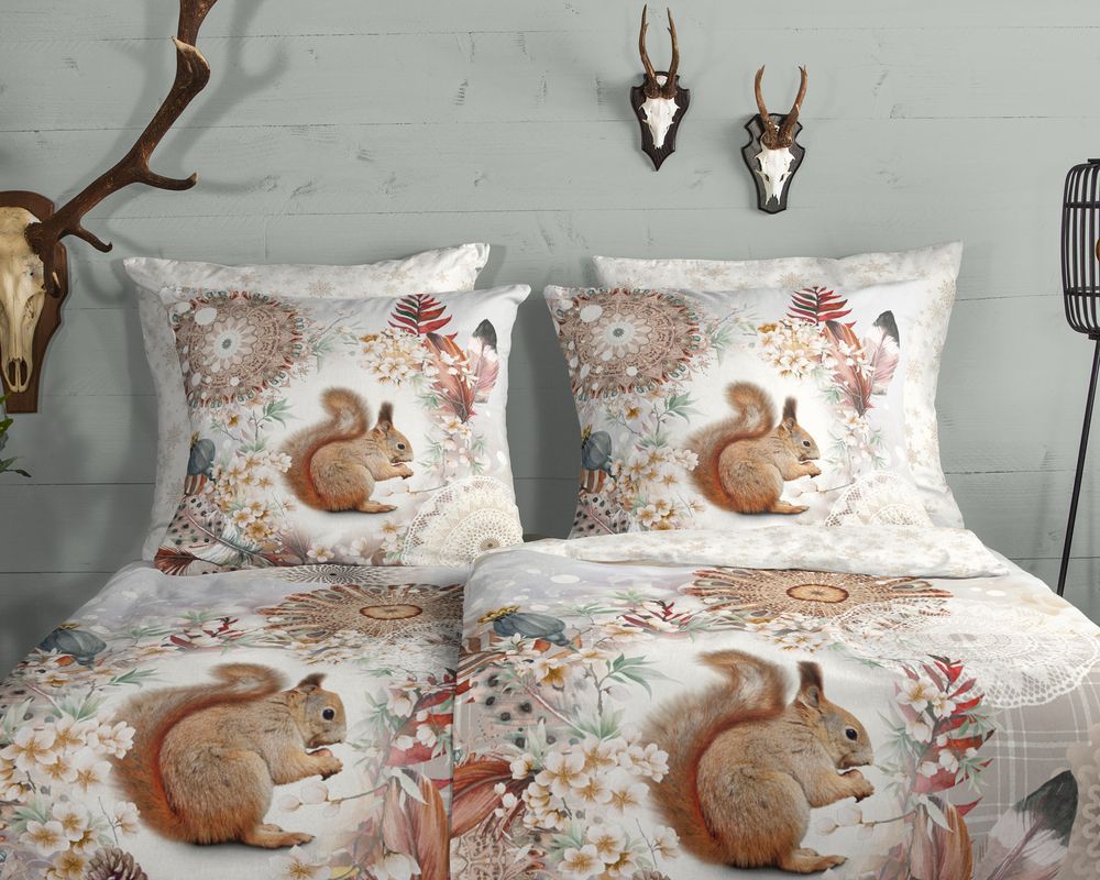 2 -teilige Flanell- Winterbettwäsche "Eichhörnchen Kosmos" in 135 x 200 cm