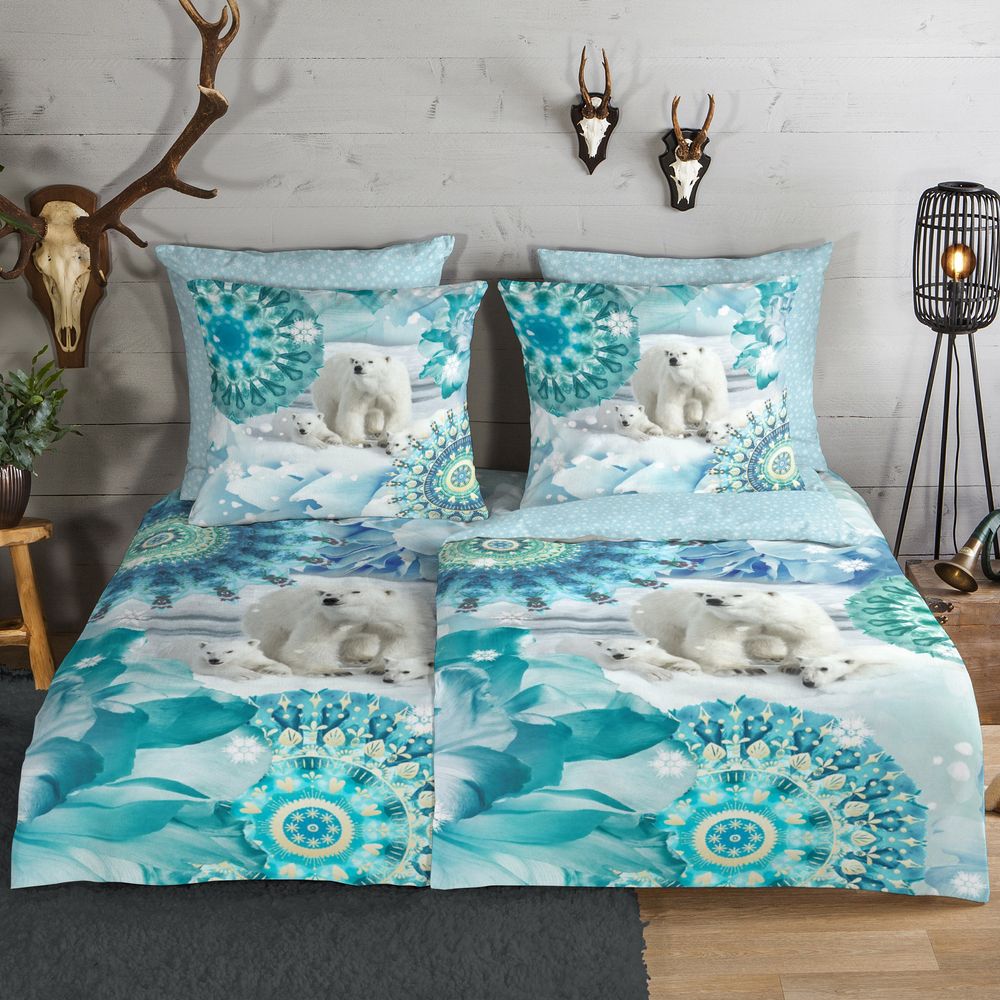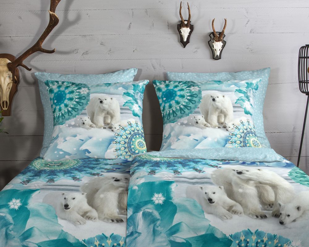 JACK Flanell Wende Bettwäsche 2 tlg. 135x200cm Eisbären Universum Mandala Winter