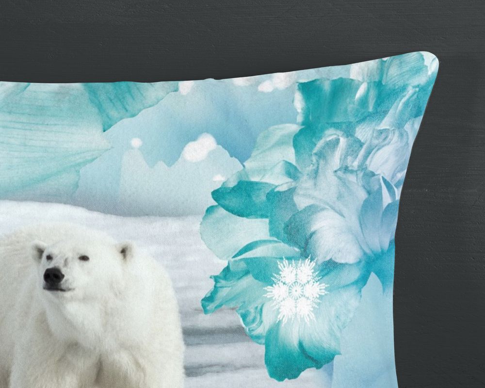 Dieses Design besticht durch das wunderschöne, naturgetreue Wintermotiv mit einer Eisbärenfamilie in der Nahaufnahme mit seinem gesamten Universum. Die schöne blau-weiße Kombination verleiht dem Schlafzimmer eine stilvolle Atmosphäre durch die Frische der gewählten Farben und die natürliche Schönheit.