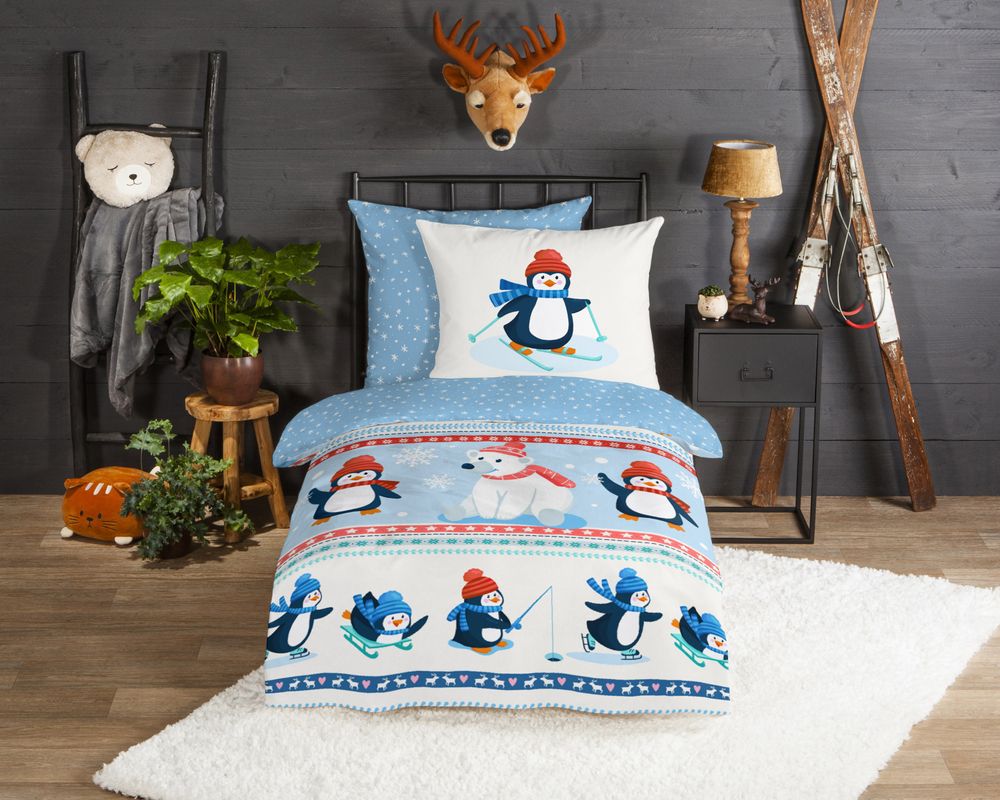 2 -teilige Flanell- Winterbettwäsche "Pinguin Eisbär Wintertraum" in 135 x 200 cm
