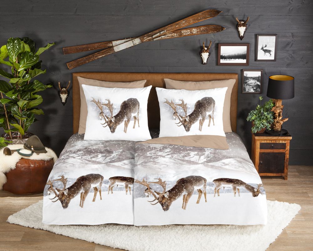 JACK Flanell Bettwäsche 2 tlg. 135x200cm Winterlandschaft Hirsch Berge Taupe
