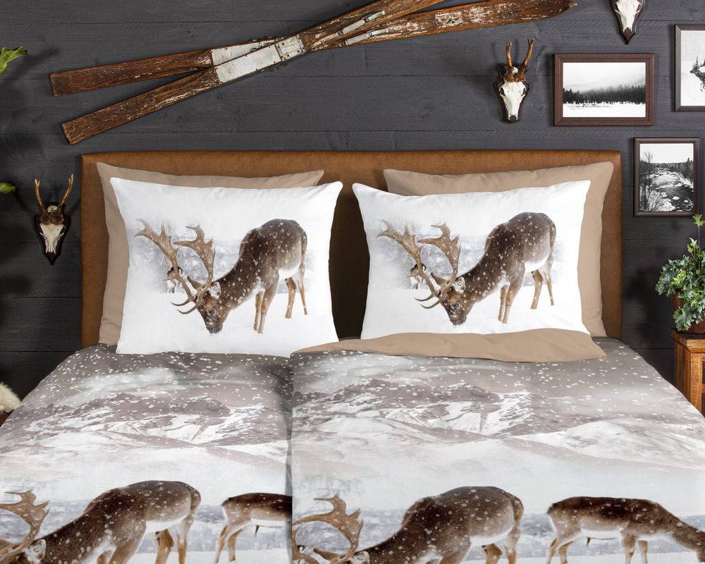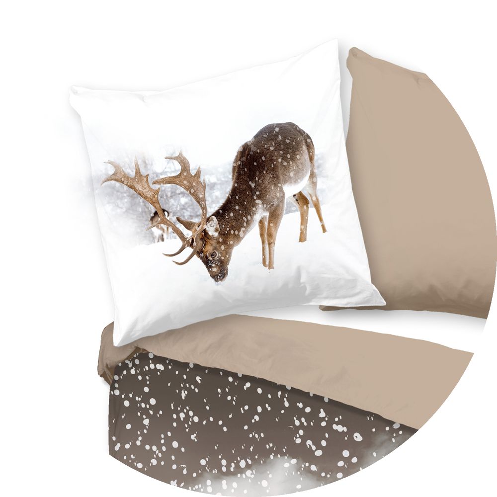 2 -teilige Flanell- Winterbettwäsche "Winterlandschaft Hirsch" in 135 x 200 cm
