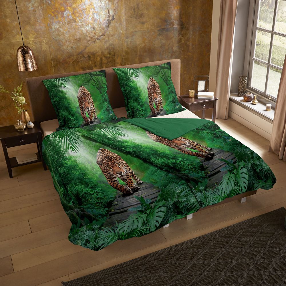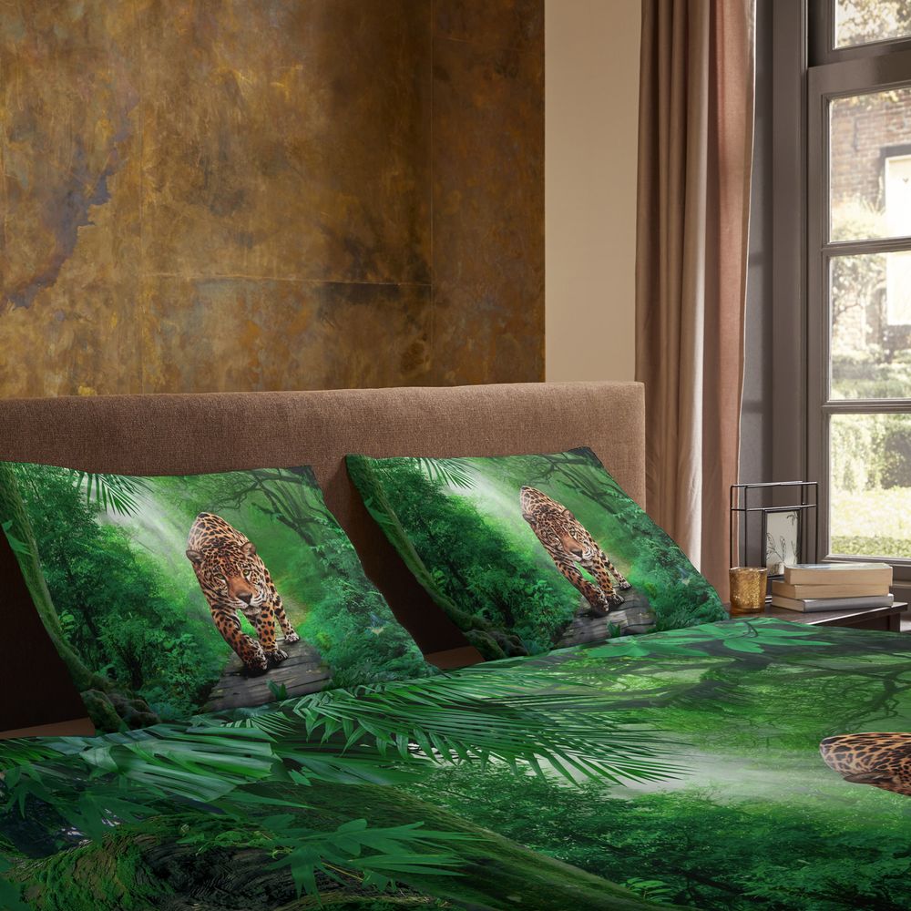 2 -teilige Mikrofaser-Bettwäschegarnitur "Amazone Dschungel Jaguar" in erfrischendem Grün