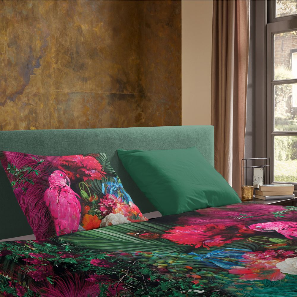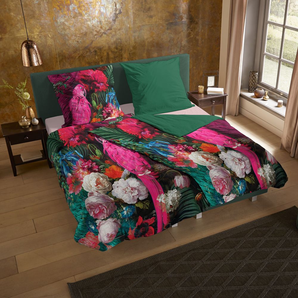 Dieses beeindruckende Blumendesign mit pinkem Papagei bringt eine Farbexplosion in dein Schlafzimmer! Die intensiven Farben verleihen deinem Bett den nötigen Pepp und raubt einem förmlich den Atem. Dieses Bettwäsche-Set ist nicht nur super geeignet für alle Blumen-Fans, sondern auch für all diejenigen, die sich ein Stückchen Frische, Eleganz und Exotik nach Hause holen wollen!