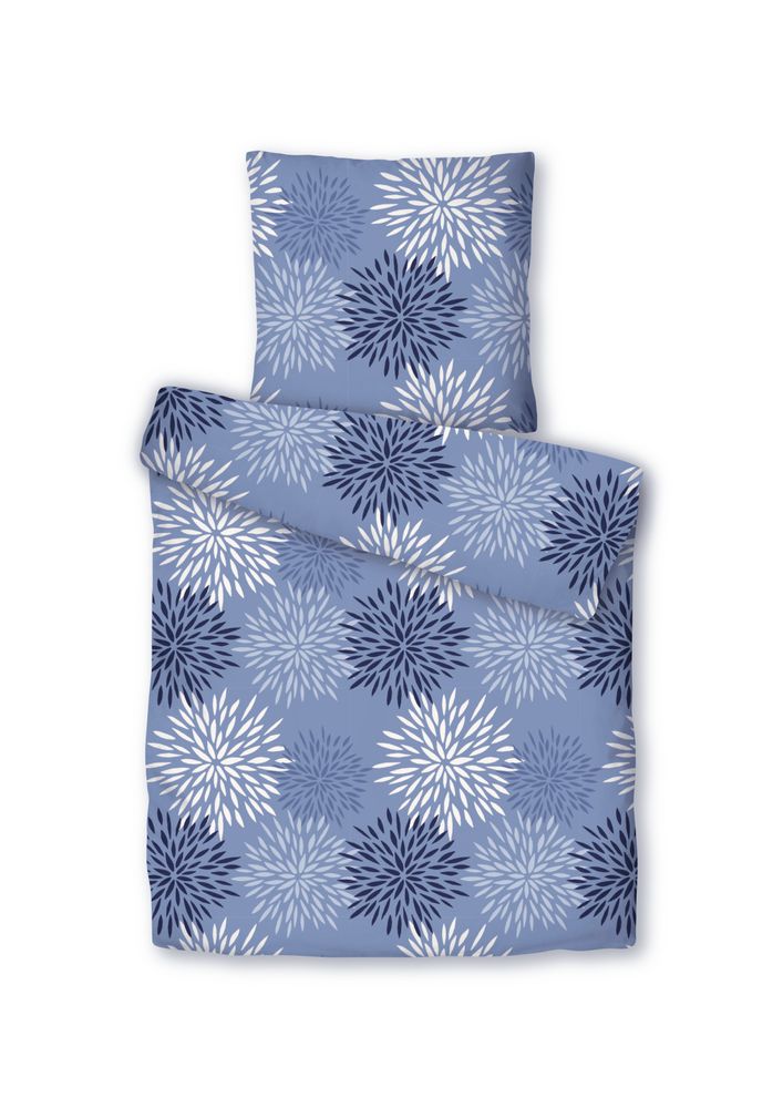 JACK Teddy Flausch Plüsch Bettwäsche 2-tlg. 135x200cm Blumenfeuerwerk Blau Grau