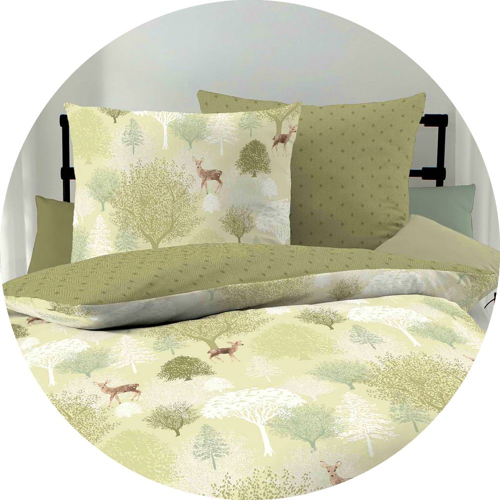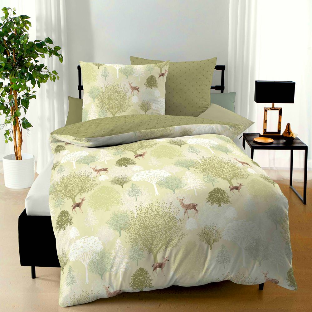 Kaeppel Fein Biber Bettwäsche 2 tlg. 135x200cm Autumn Spring Rehe Hellgrün