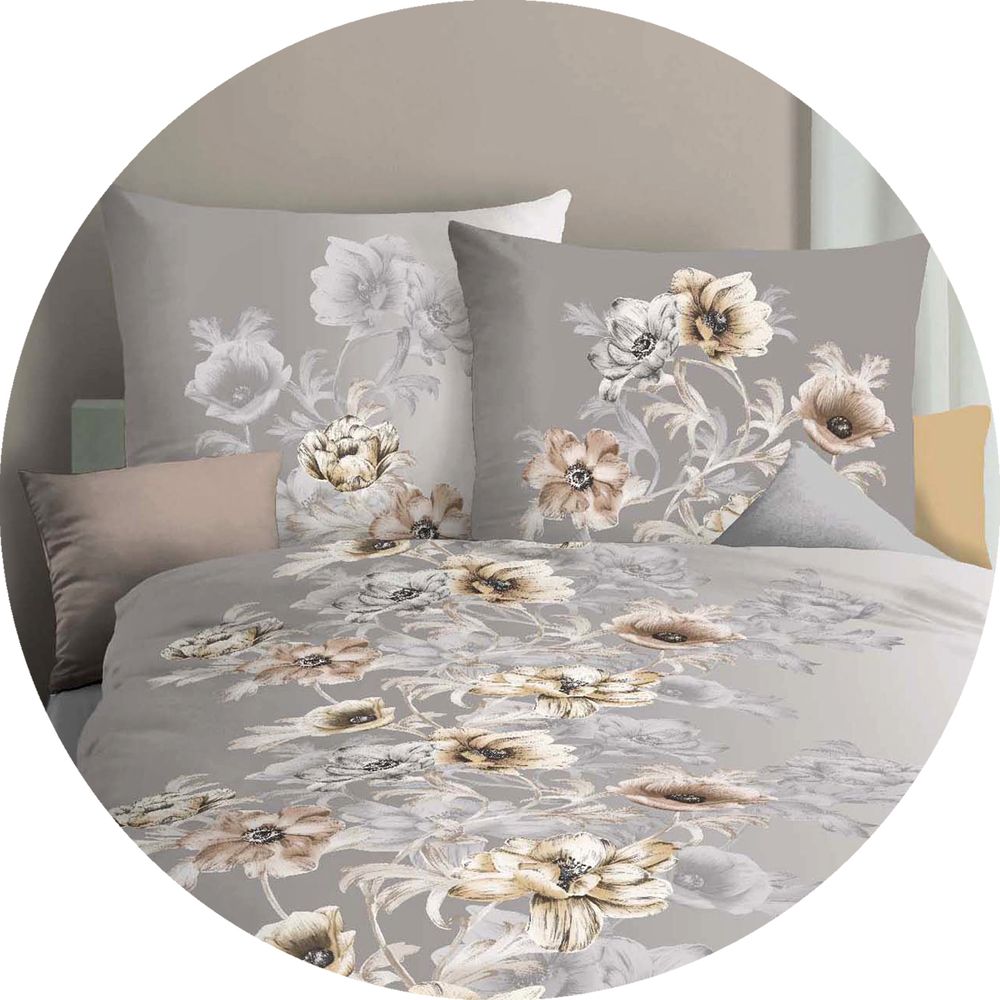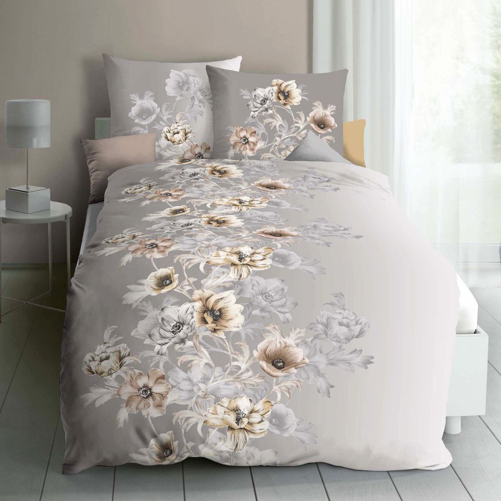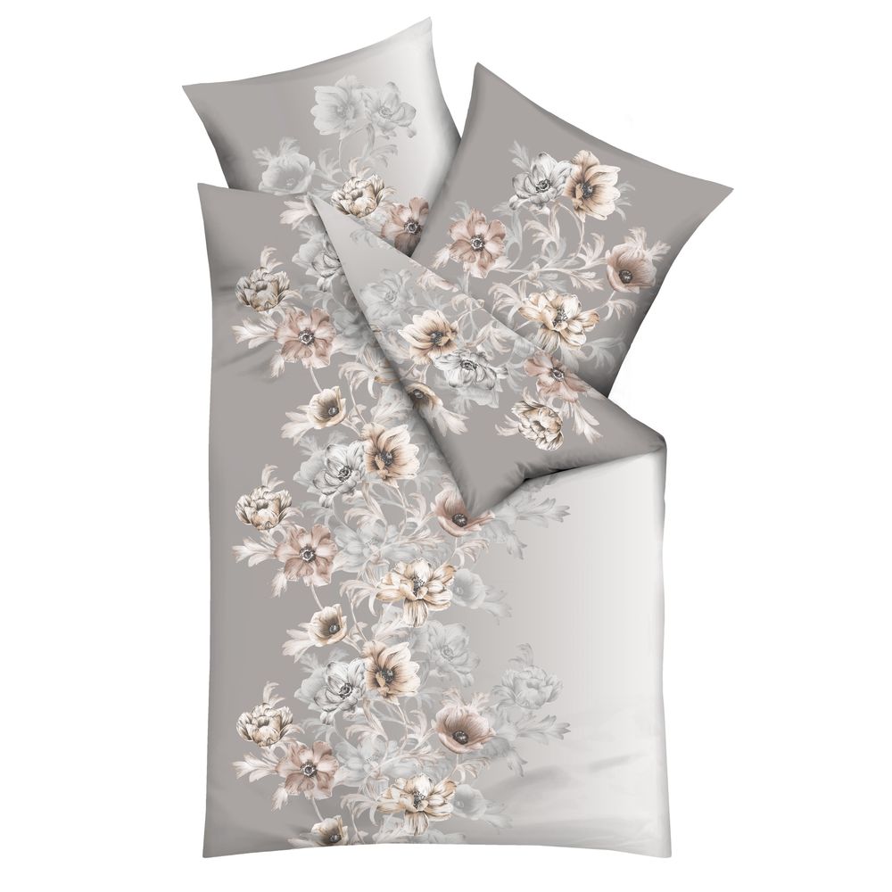 Kaeppel Fein Biber Bettwäsche 2 tlg. 135x200cm Victoria Blumen Kiesel Grau