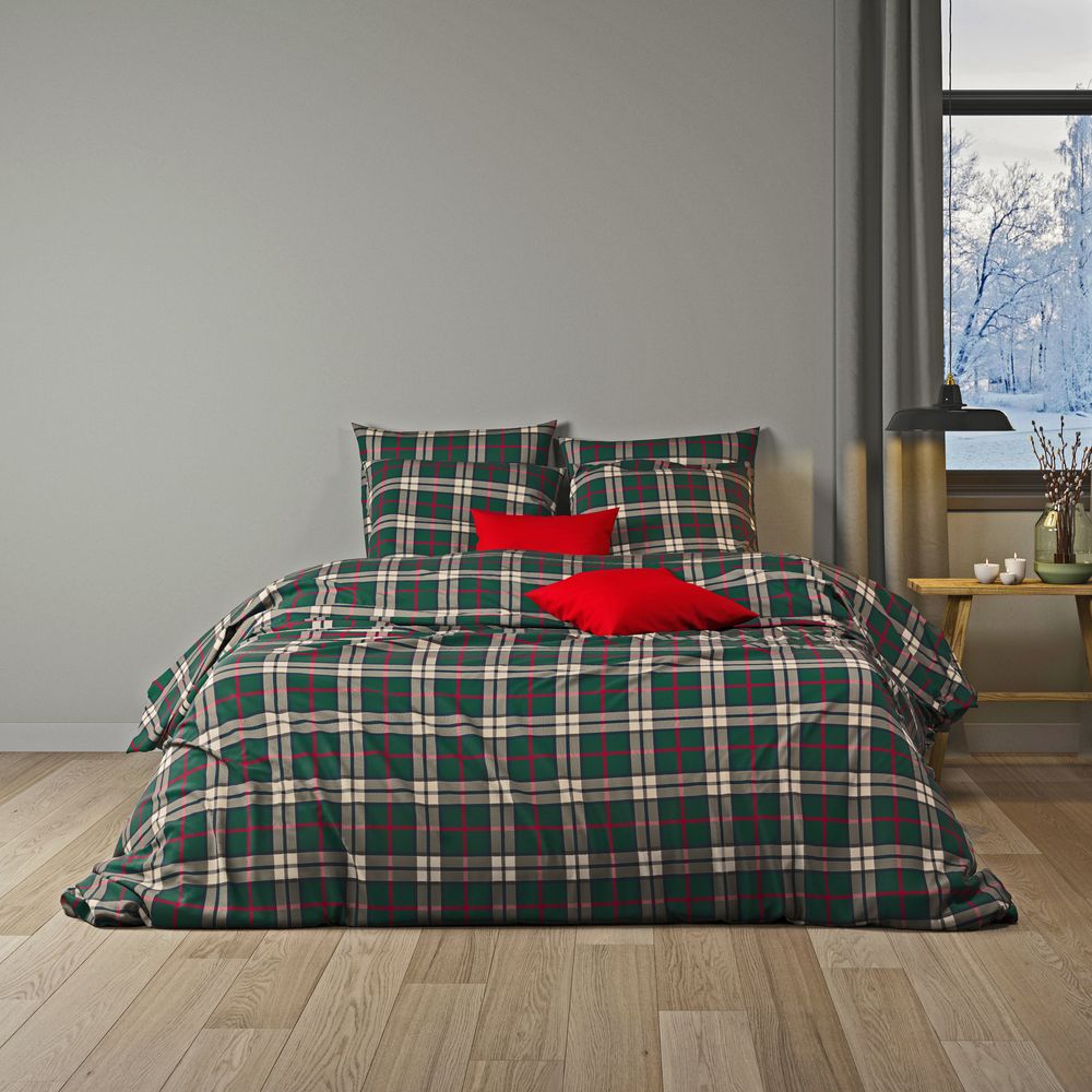 Kuschelige Winterstimmung für Ihr Schlafzimmer: Diese Bettwäsche aus hochwertiger Flanell-Qualität besteht aus 100 % Baumwolle und sorgt für wohlige Wärme in kalten Nächten. Durch dieses liebevolle Karo-Motiv im dunkelgrünen Design mit roten und cremigen Akzenten wird diese Bettwäsche zum schicken Blickfang in der kalten Jahreszeit.
