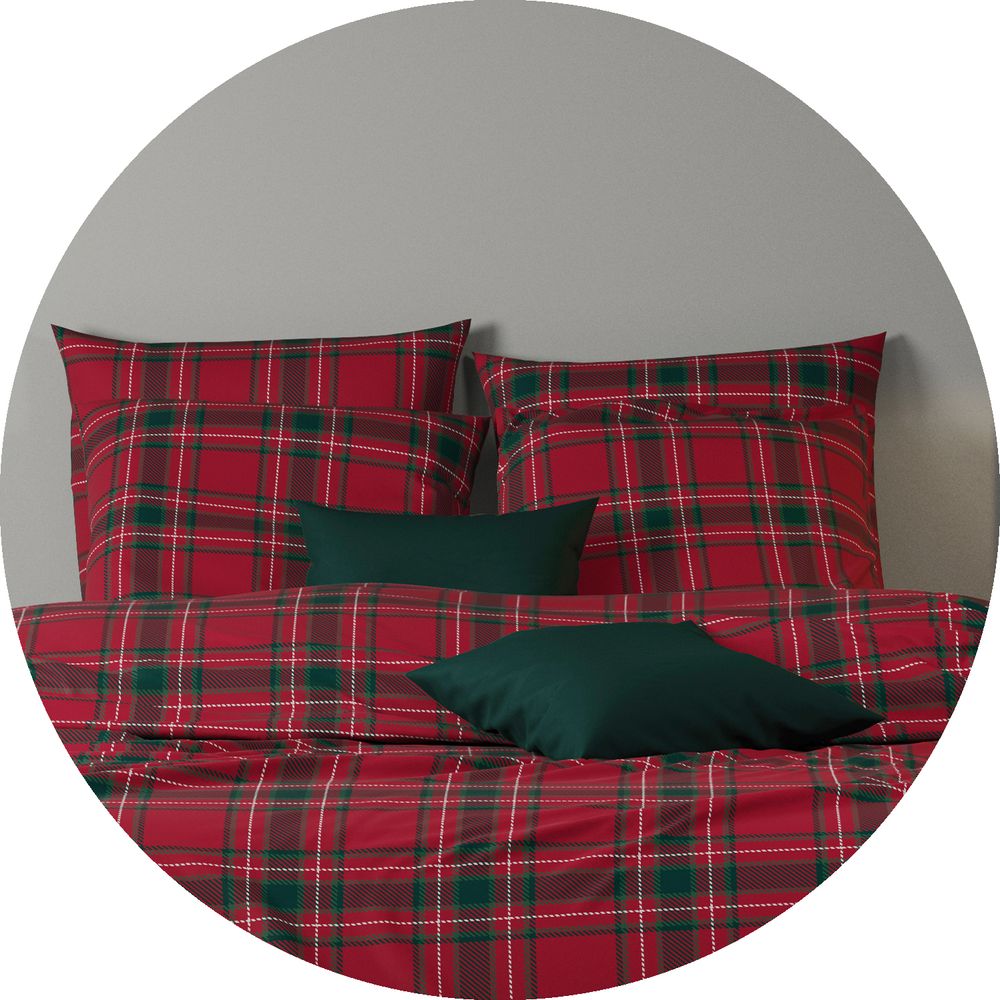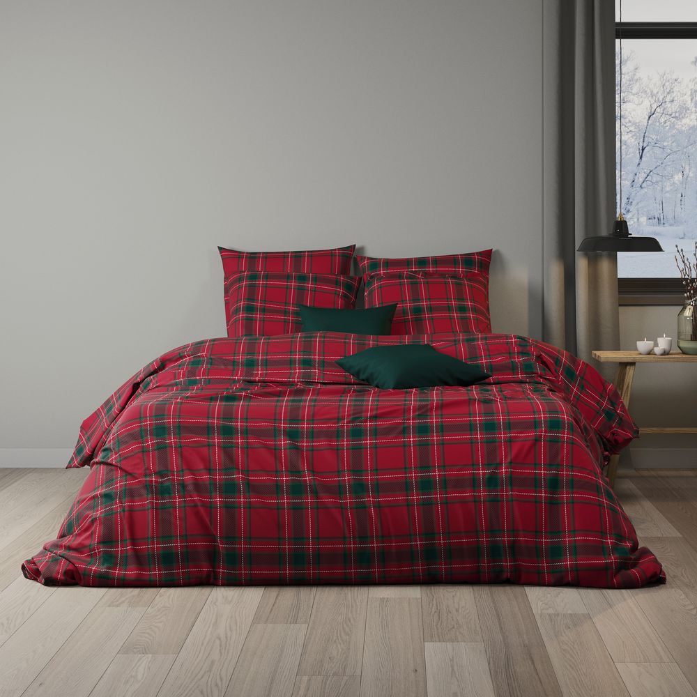 Kuschelige Winterstimmung für Ihr Schlafzimmer: Diese Bettwäsche aus hochwertiger Flanell-Qualität besteht aus 100 % Baumwolle und sorgt für wohlige Wärme in kalten Nächten. Durch dieses liebevolle Karo-Motiv im rot-dunkelgrünen Design wird diese Bettwäsche zum schicken Blickfang in der kalten Jahreszeit.