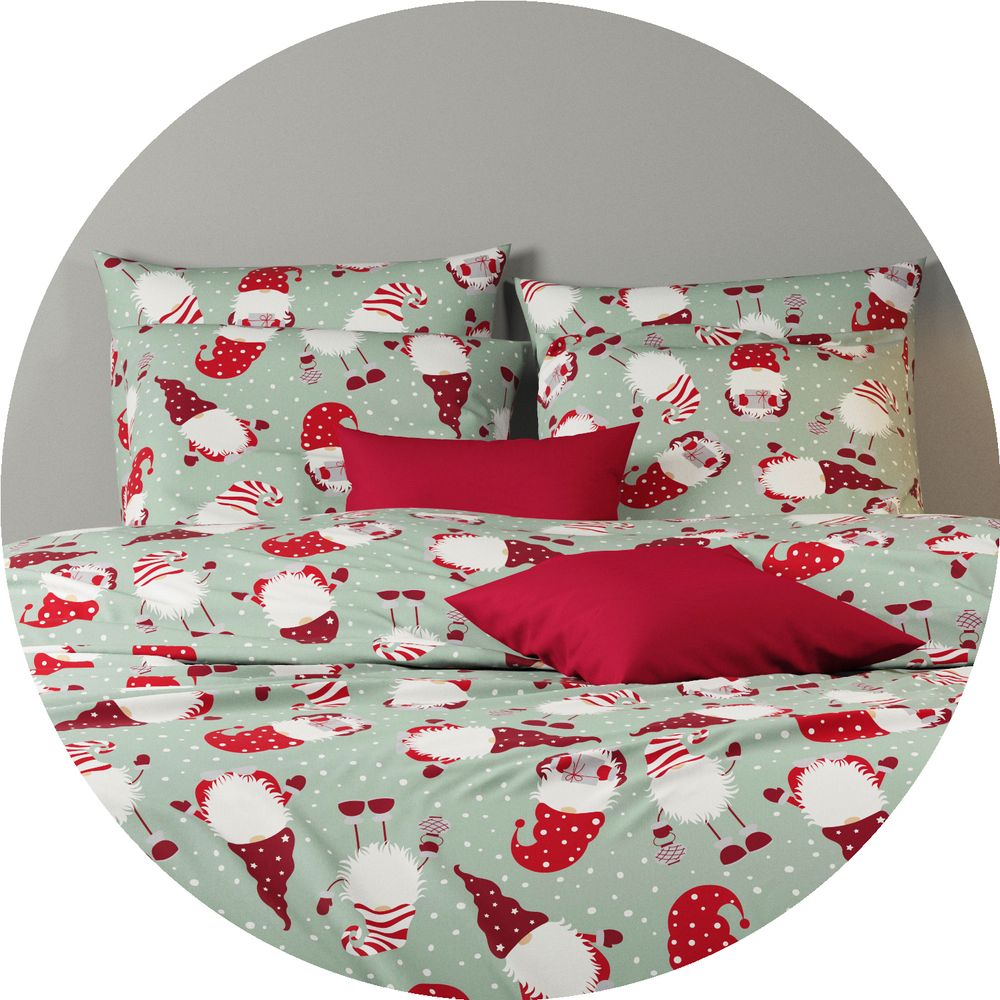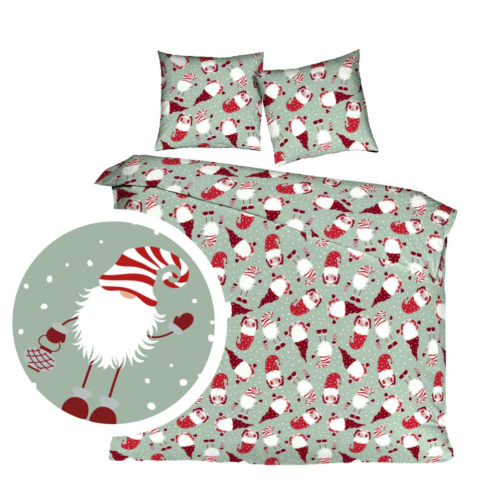 Mistral Flanell Winter Bettwäsche 2 tlg. 135x200cm Wichtel Schnee Mint Grün Rot