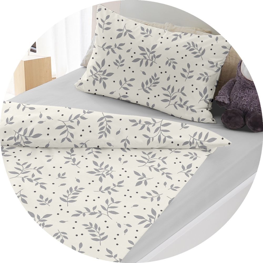 JACK Fein Biber Bettwäsche Baby 2 tlg. 100x135cm Floral Neutrale Natur Weiß Grau