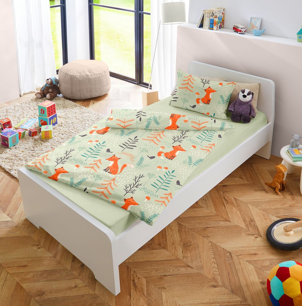 2 -teilige Baby Biber - Bettwäschegarnitur mit süßen Füchsen im Wald