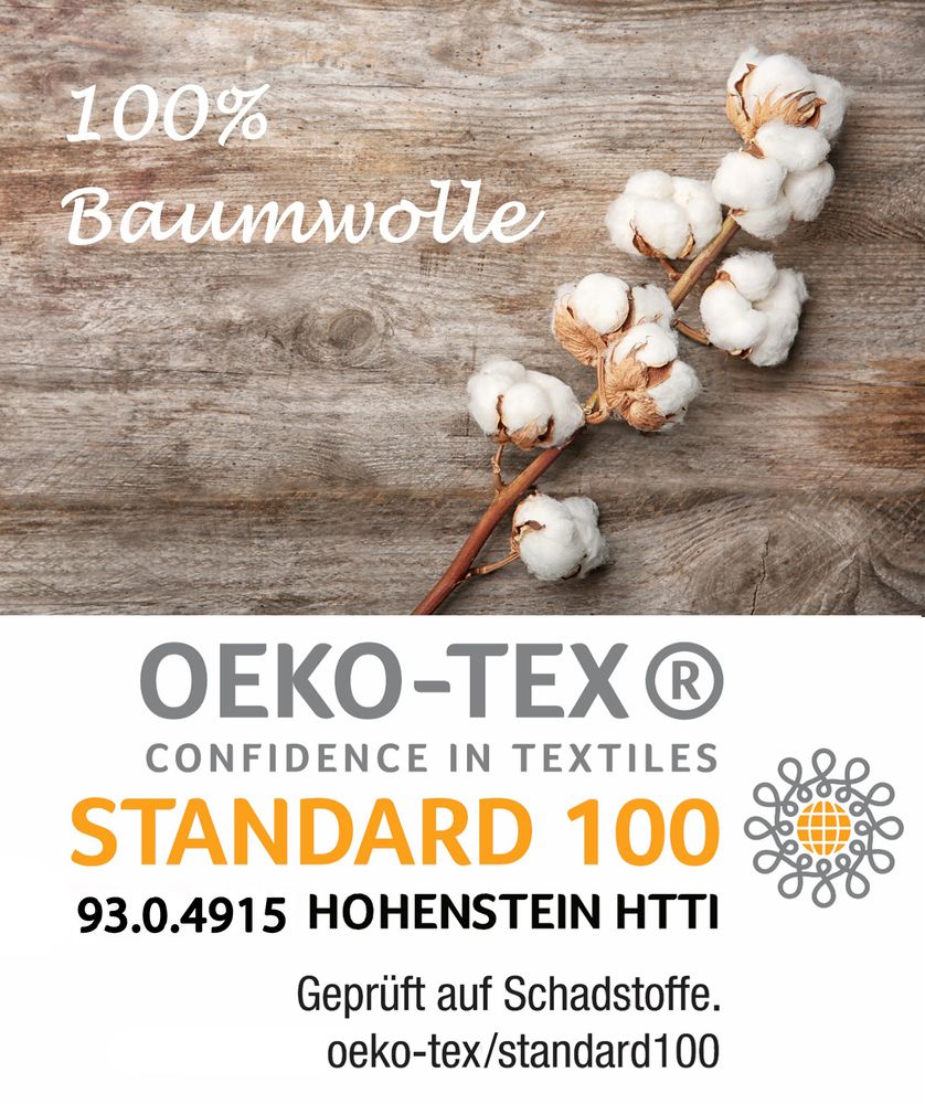 Geprüfte Qualität Öko-Tex Standard 100 - dieser Artikel untersteht laufenden Kontrollen durch den Hersteller.