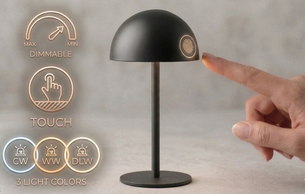 Diese hochwertige LED-Tischlampe vereint modernes Design mit praktischer Funktionalität. Wählen Sie aus vielen verschiedenen, attraktiven Farben die passende für Ihr Wohnambiente. Das wechselbare Licht (Warmweiß, Tagesweiß, Kaltweiß) lässt sich per Touch-Dimmer individuell und stufenlos anpassen – ideal zum Lesen, Arbeiten oder Entspannen.