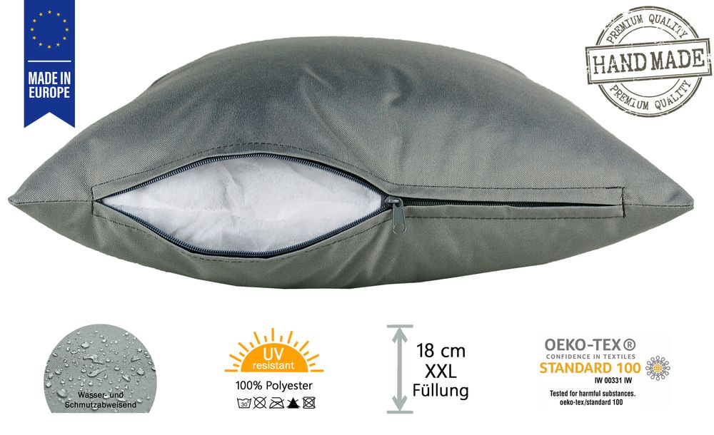 Mit diesen dekorativen XXL gefüllten Kopfkissen Serie der Marke "JACK" für den Innen- und Außenbereich, gelingt Ihnen das im Handumdrehen. Die Kissen sind äußerst pflegeleicht und sehen - da man sie seltener waschen muss - viel länger "wie neu" aus. Zusätzlich sind diese Kissenbezüge UV - Resistent und daher besonders lichtecht.
