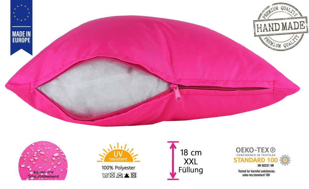 Mit diesen dekorativen XXL gefüllten Kopfkissen Serie der Marke "JACK" für den Innen- und Außenbereich, gelingt Ihnen das im Handumdrehen. Die Kissen sind äußerst pflegeleicht und sehen - da man sie seltener waschen muss - viel länger "wie neu" aus. Zusätzlich sind diese Kissenbezüge UV - Resistent und daher besonders lichtecht.