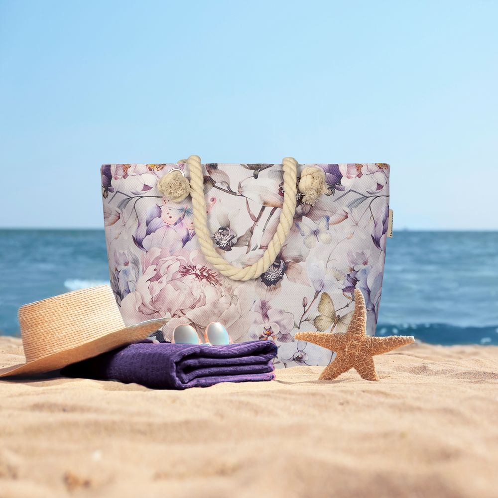 Diese Strandtaschen zeichnen sich durch ihre lebendigen Designs aus – von fröhlichen Blumenmustern über exotische Tiermotive bis hin zu abstrakten Farbspielen. Die bunten Motive machen die Taschen zu echten Hinguckern und bringen Farbe in jeden Sommertag.