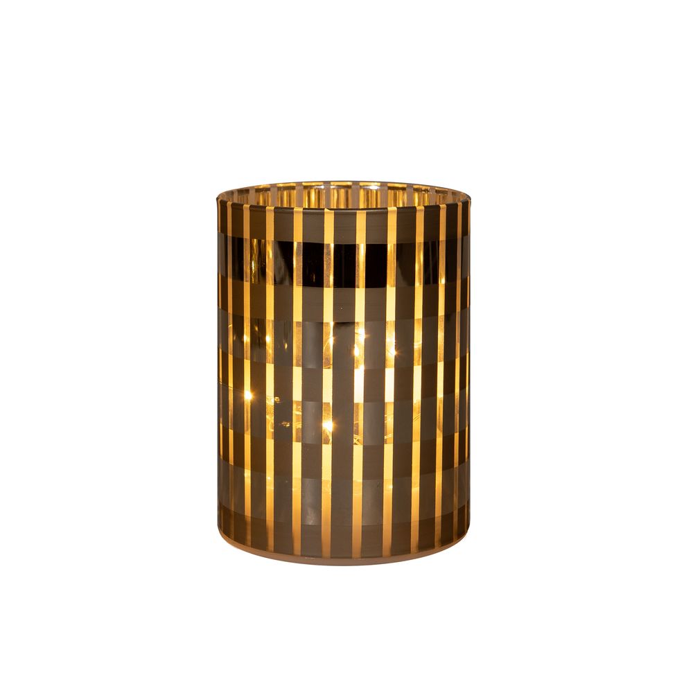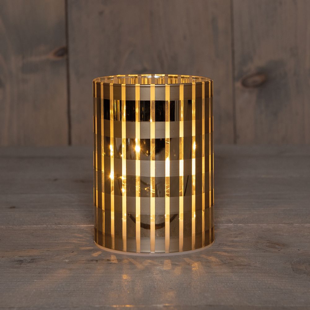 Die kompakte Größe (Ø 9cm x 12cm hoch) und das zeitlose Design machen sie zu einem stilvollen Hingucker – ob auf dem Tisch, Nachttisch oder Sideboard. Im Inneren des Glases befindet sich ein kunstvoll arrangierter Lichtdraht mit 10 kleinen LEDs.